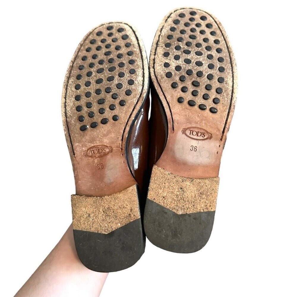 Tod's Brown Driving Loafer Shoe Patent Leather Women's Size EU 36 US 5.5