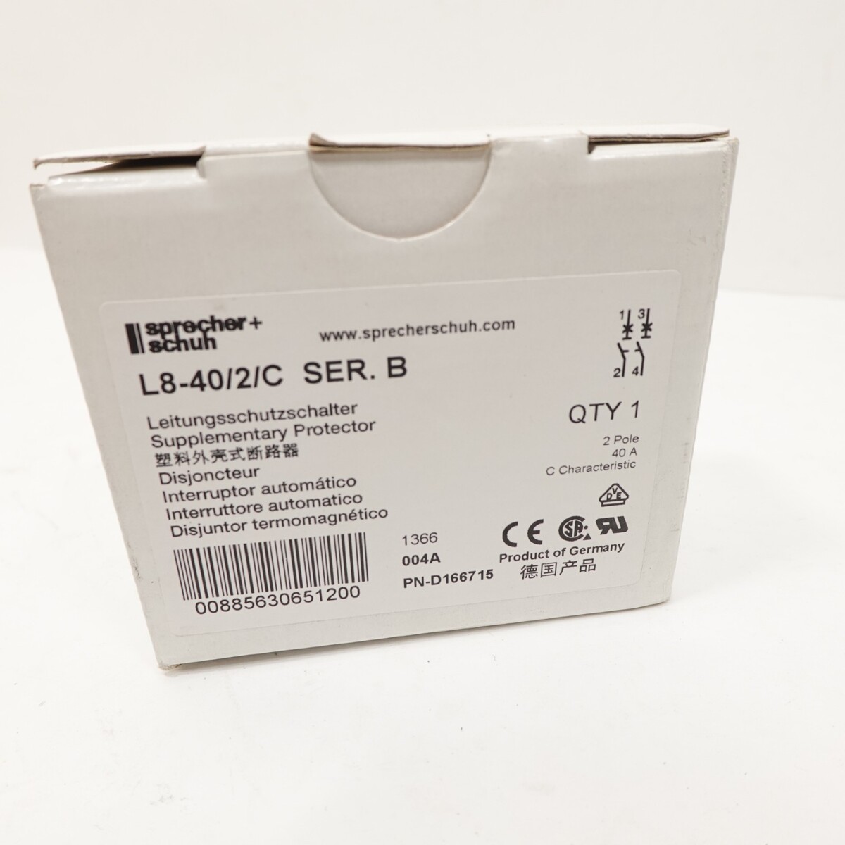 Sprecher + Schuh L8-40/2/C SER. B Supplementary Protector 2-Pole 40A C Curve