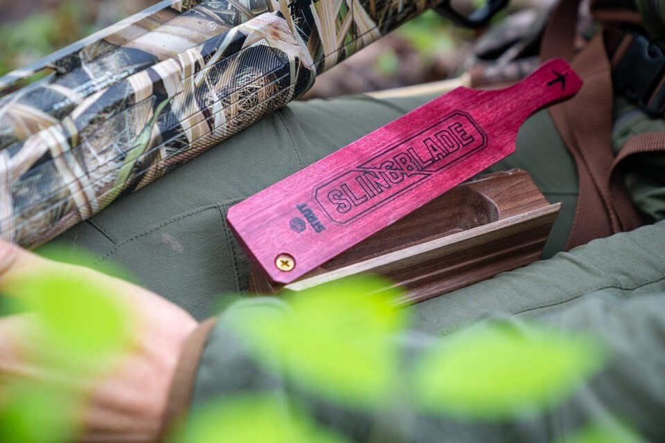 Perfect clucks, cutts, yelps and purrs hand tuned high-pitched sounds are created by the Slingblade box call from Strut Hunters Sprecialties are imitate sounds realistically.