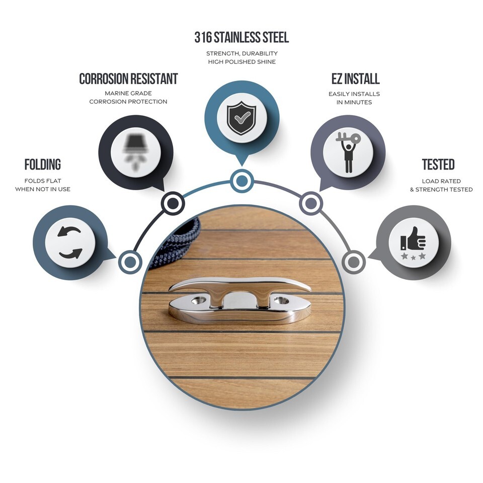 Whitecap 6744 Stainless Steel Folding Cleat, and similar items