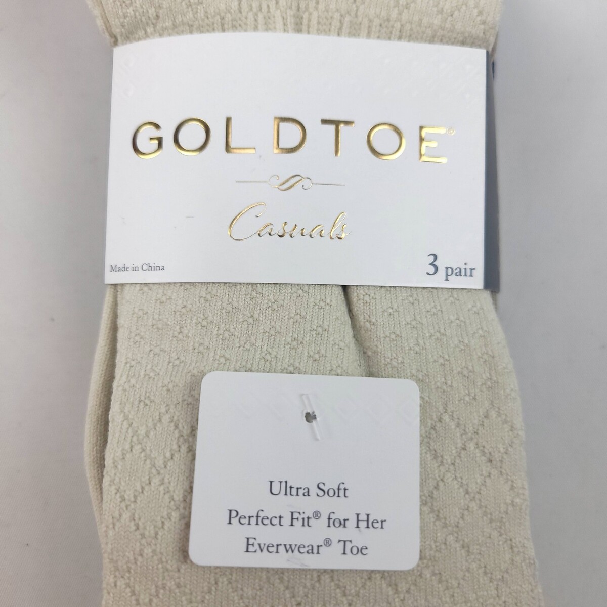 Gold Toe Casuals 3 Pair Ultra Soft Womens Shoe Size 6-9 New Beige Navy