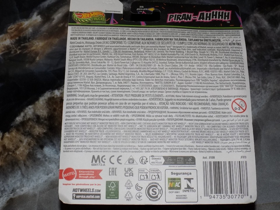 The SPIN MASTER 2024 Hot Wheels Monster Trucks GLOW IN THE DARK PIRAN-AHHHH toy is a 1:64 scale diecast vehicle featuring a unique glow-in-the-dark design. This multi-color monster truck is part of the Hot Wheels Monster Trucks series and is recommended for children aged 3 and older. The unopened box adds to the excitement of this new 2024 release, making it a popular choice for both boys and girls who enjoy collecting and playing with toy vehicles. Designed for ages 3 and up, this Hot Wheels toy is sure to bring hours of imaginative play.