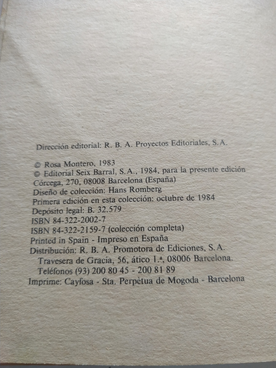 I will treat you como a Queen Rosa Montero 1984 Seix Barral - Spanish Book