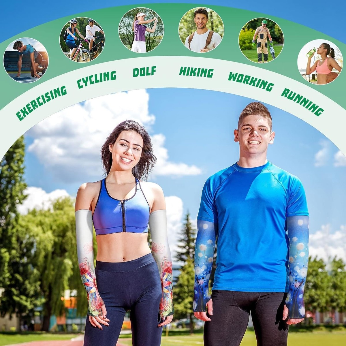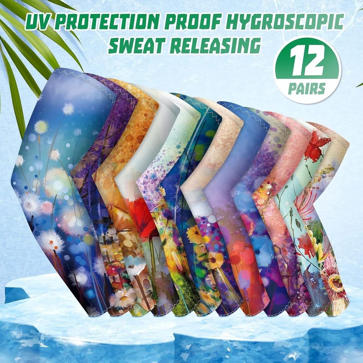 12 Elegant Floral UV Sun Protection Arm Sleeves - Perfect for Gardening & Sports