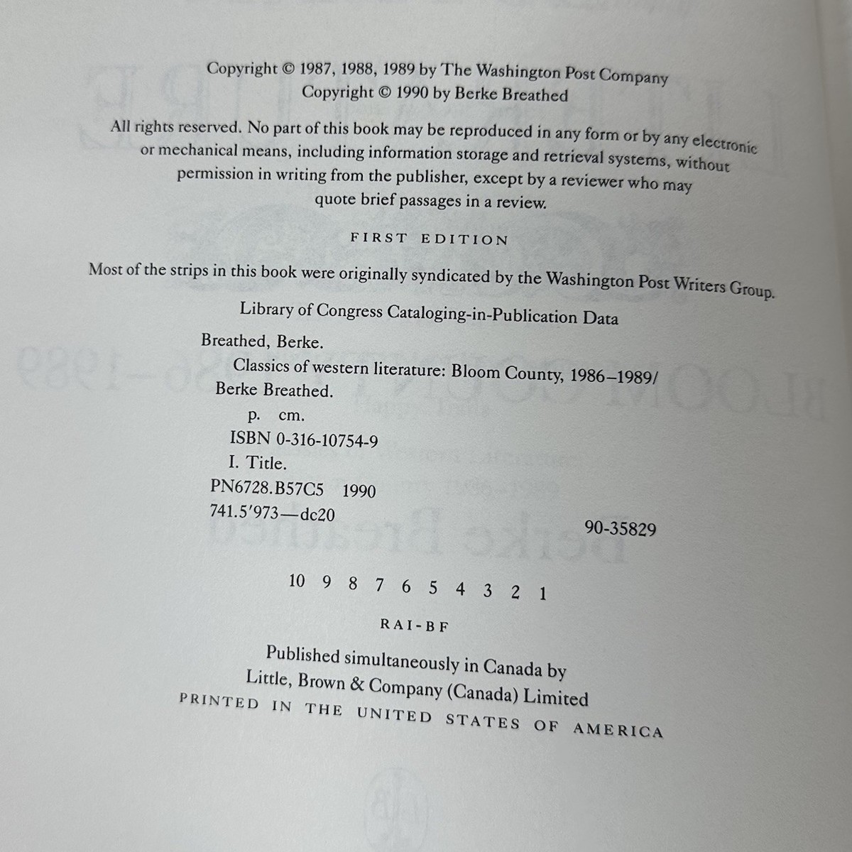 Vintage CLASSICS OF WESTERN LITERATURE Bloom County 1986-1989 Paperback Book