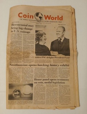 This is a Vintage Coin World Newspaper with President Ford on the front page Dated October, 8. 1975. The newspaper has 80 pages.... Let me know if you have any questions Thankyou for looking