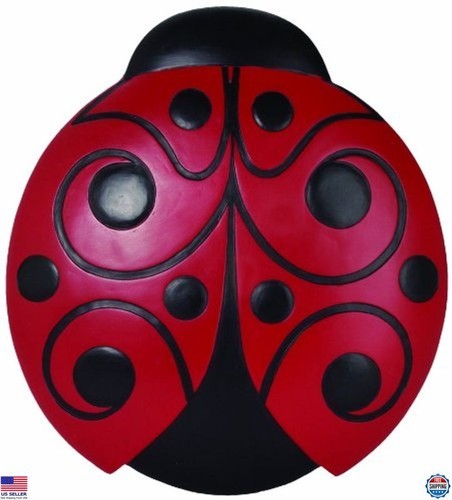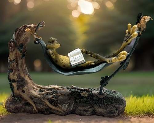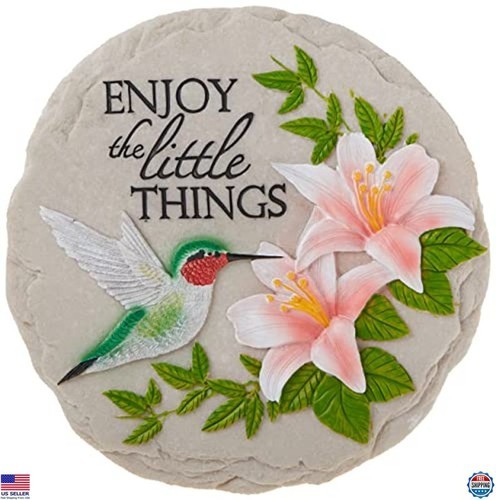 Decorative garden stone featuring a green frog and colorful flowers. Perfect for adding charm to your garden.