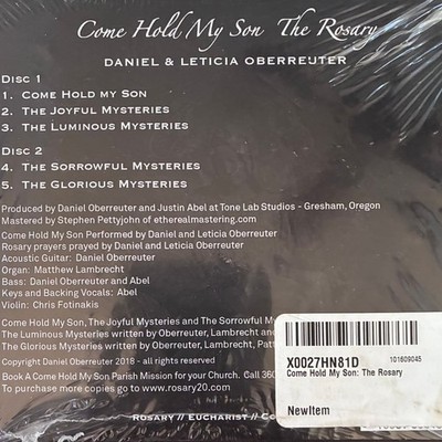 Come Hold My Son - The Rosary by Daniel Leticia Oberreuter, a 2-disc CD set released in 2018. This devotional album features meditative rosary prayers and reflections. Ideal for spiritual practice and quiet contemplation. This CD is new and still sealed.