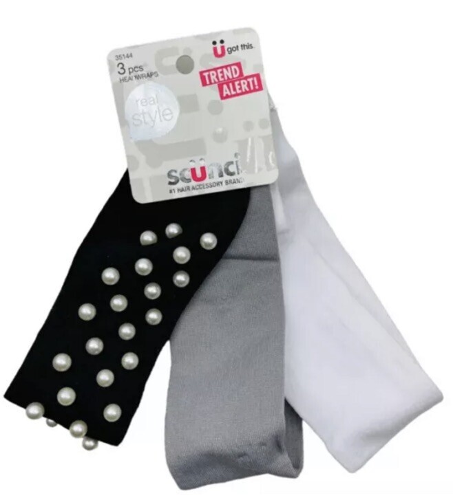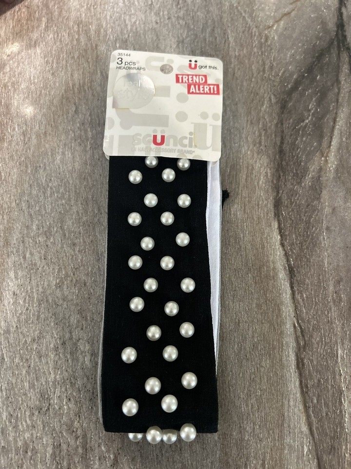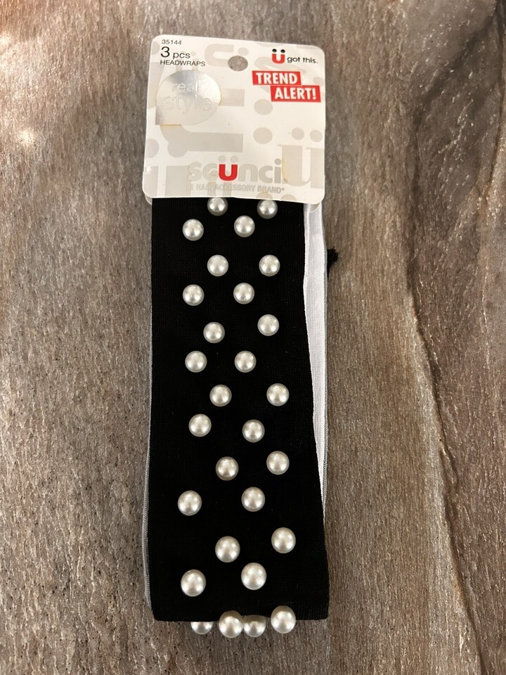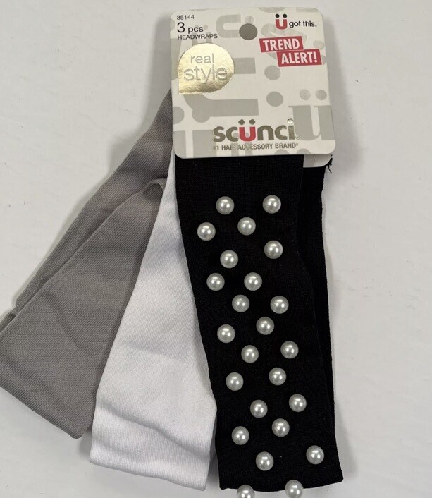 Headwraps Headbands 3-pack Gorgeous Black W/ Ivory Pearls White Gray Scunci.