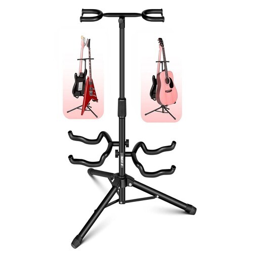Holds 2 Guitars - This double guitar stand is designed to securely hold up to 2 guitars at once ideal for multi instrumentalists, performers, or studios.