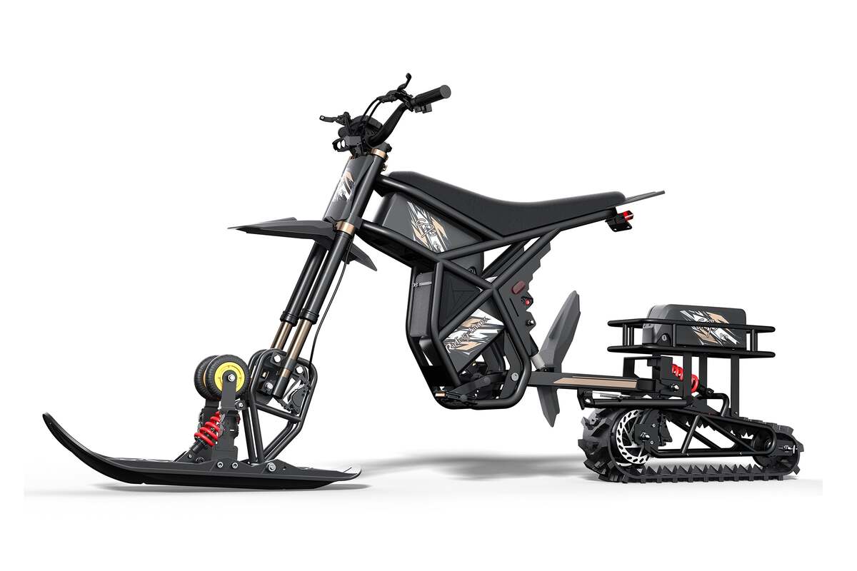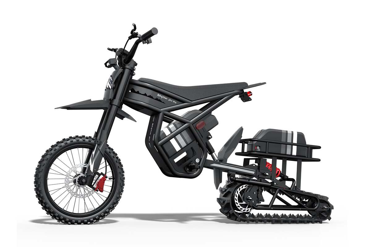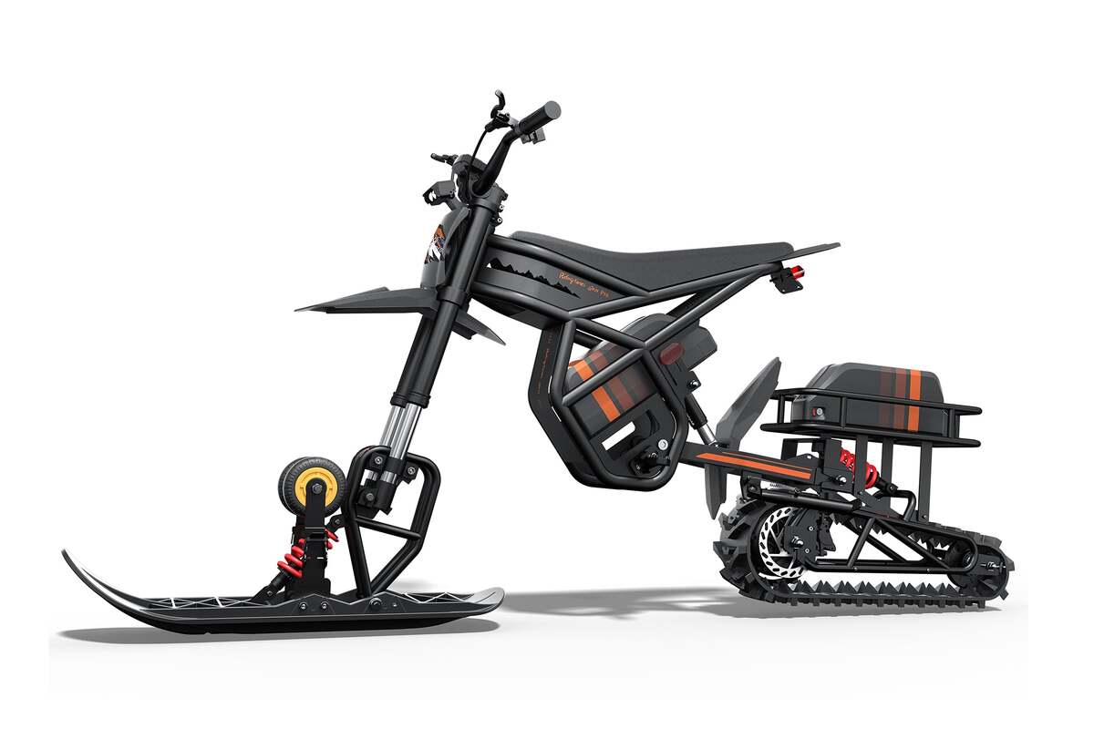 Don’t stop riding just because it’s winter—keep the adventure going with the Riding Times Snow Track Kit. Powered by a peak 3000W motor and 92.3N·m torque, this kit transforms your eBike into a snow-crushing machine. With front and rear shock absorbers, strong A3 carbon steel + PA66 build, and a 220LBS load capacity, you get smooth, stable, all-season performance. Snowy hills? Fresh powder? No problem.