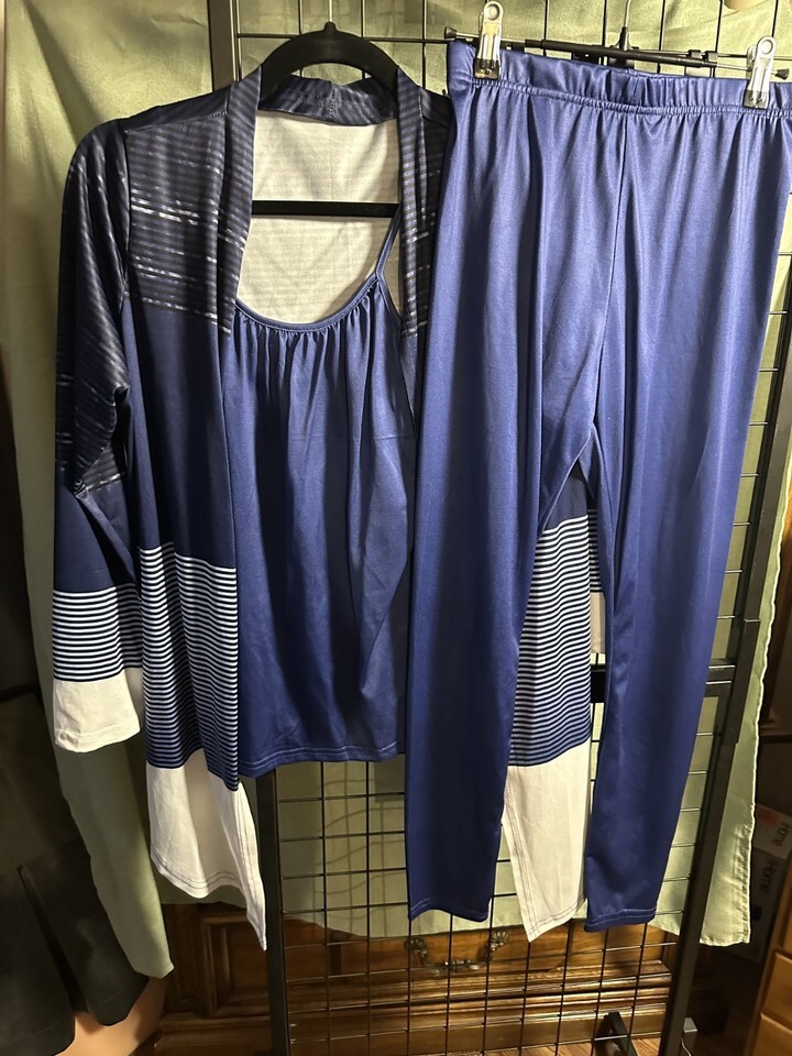 Upgrade your wardrobe with this versatile bundle of three complete outfits, all in Women?s Size Small. This set includes two matching tank?top and capri outfits plus one stylish three?piece set featuring a camisole, pants, and a coordinating jacket. Perfect for casual wear, lounging, errands, or travel.