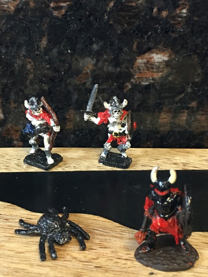 Four classic fantasy miniatures, hand-painted and ready for table play. Perfect foes for D D / AD D-style adventures, skirmish games, or display. Manufacturer aligns with vintage Grenadier/Ral Partha)