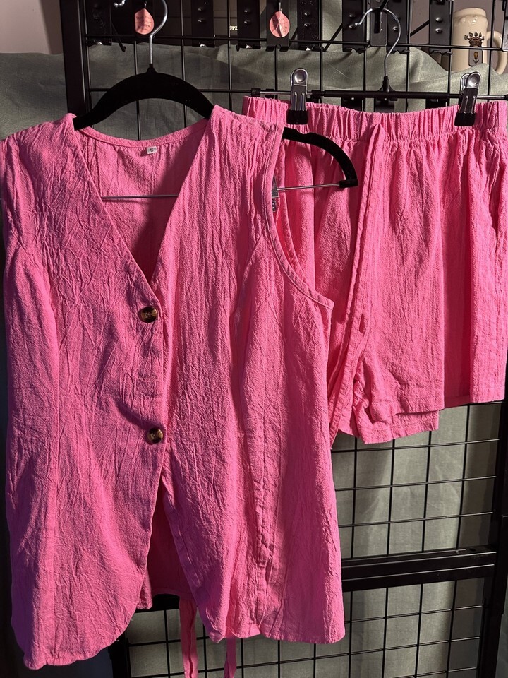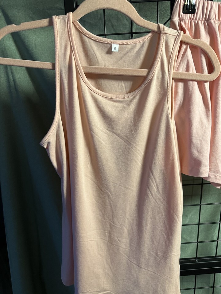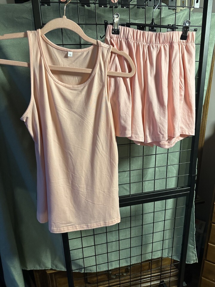 Freshen up your warm?weather wardrobe with this set of three matching two?piece outfits, each including a stylish top and coordinating shorts. All pieces are Women?s Size Small and perfect for casual days, lounging, errands, or summer outings.