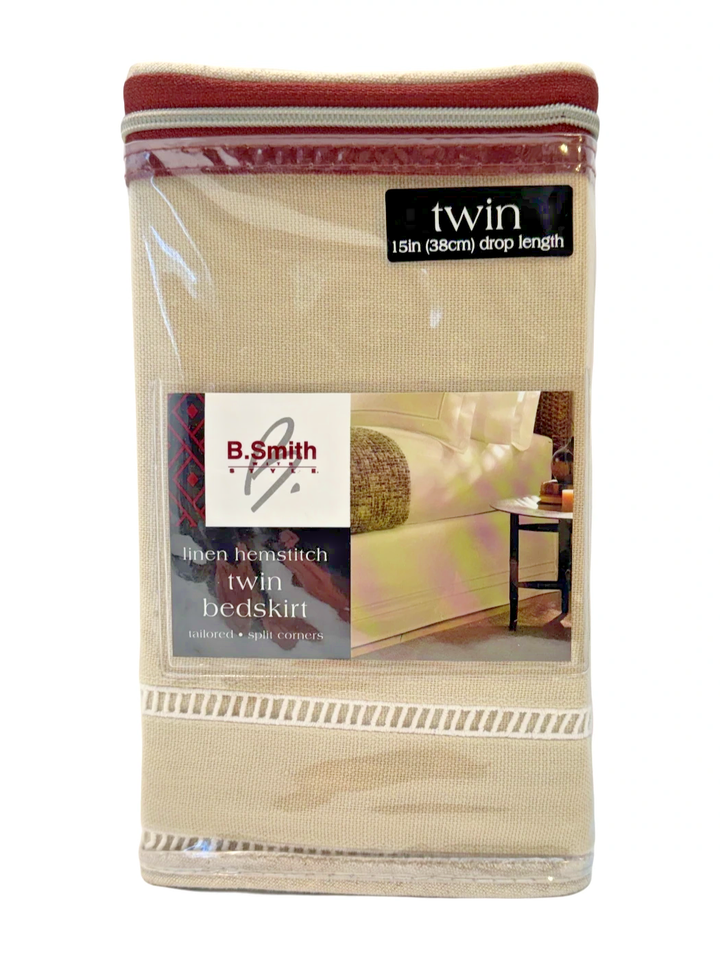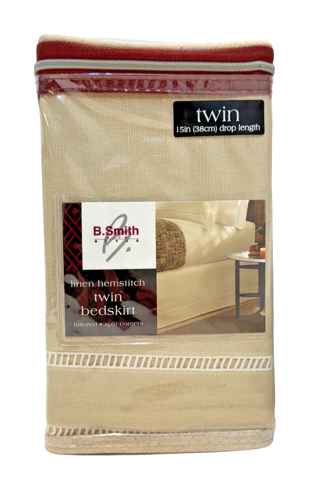 Classic Hemstitch Twin Bedskirt 15" Drop Linen Blend Split Corners Natural
