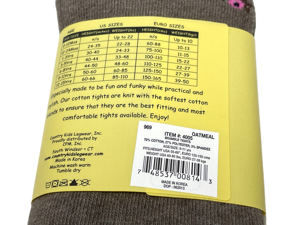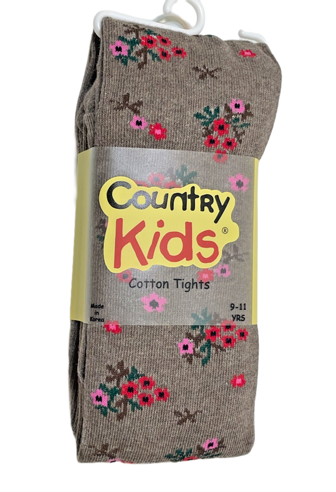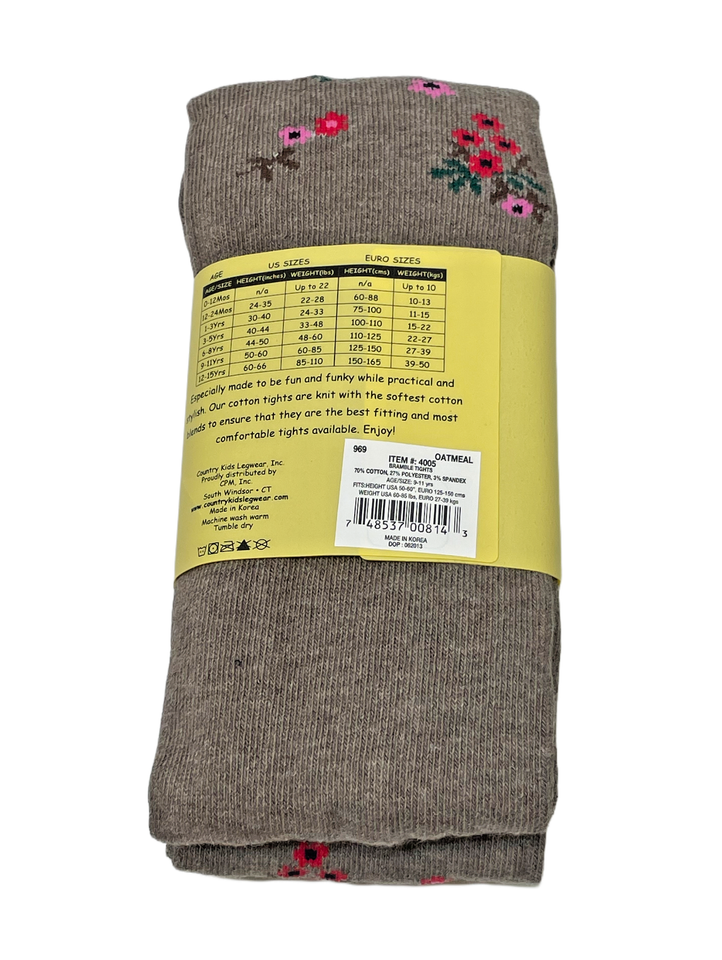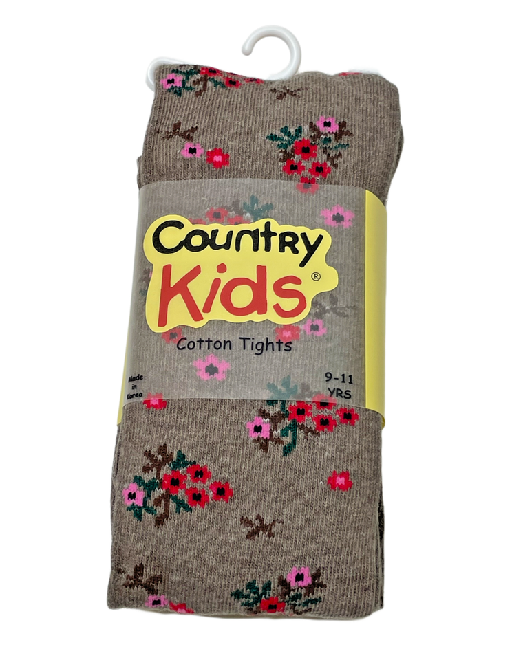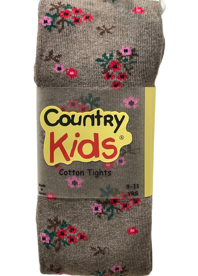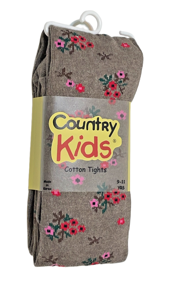 Country Kids Cotton Tights Girls 9-11 Color Brown Floral Multi Cotton Blend Fall
