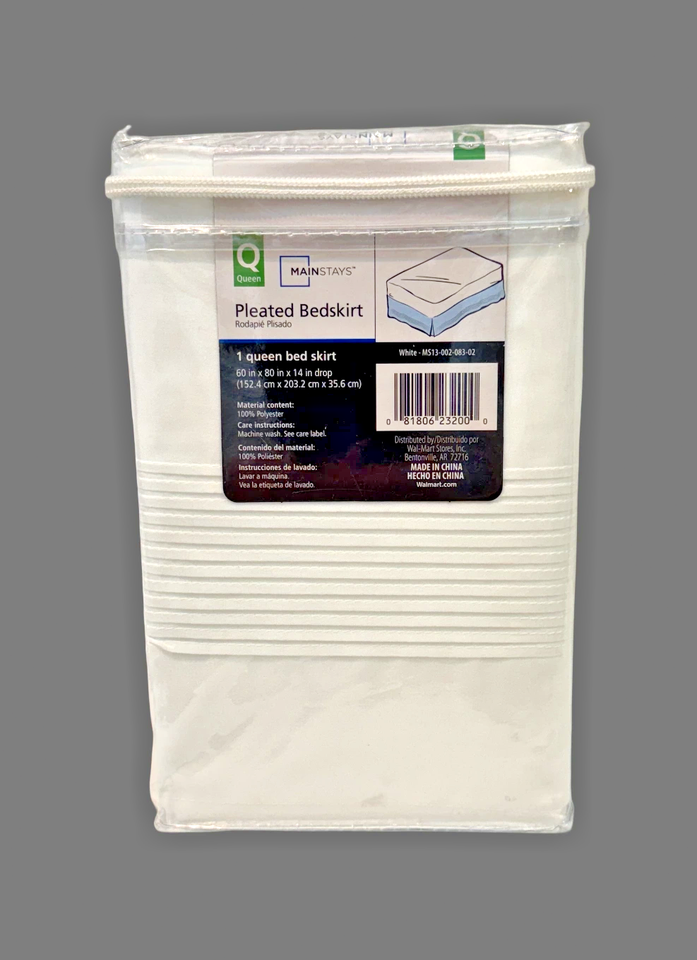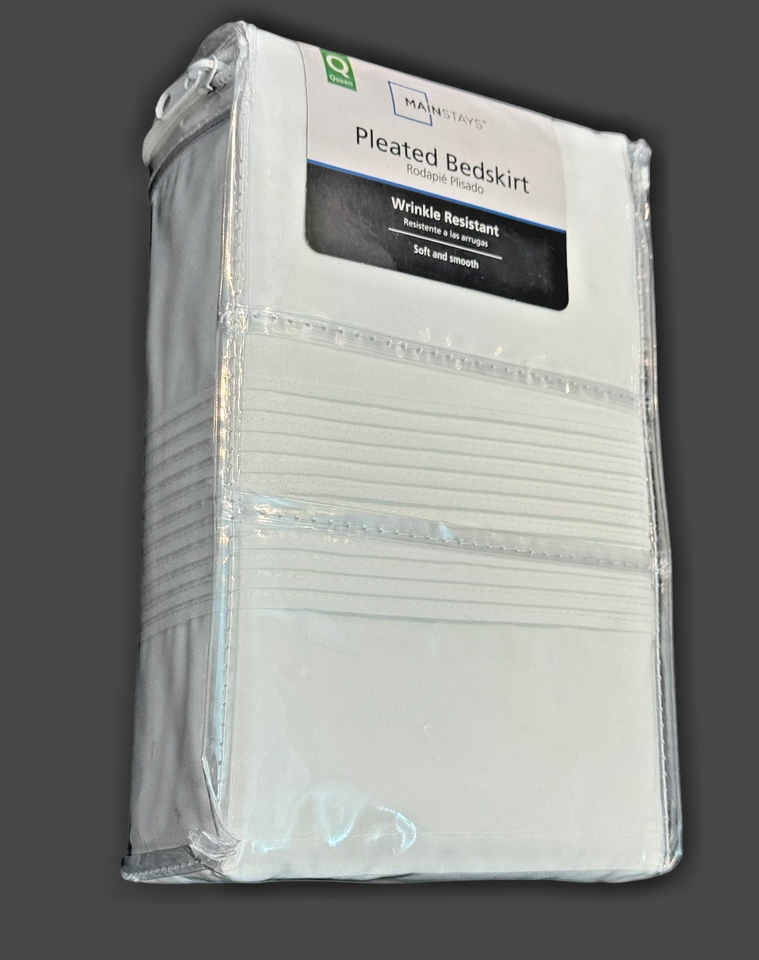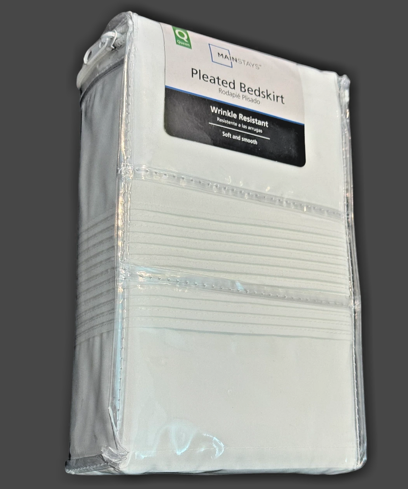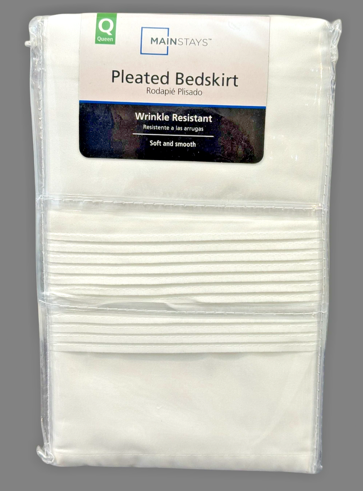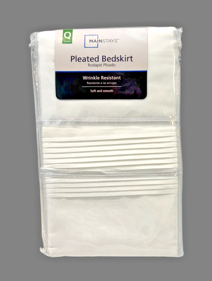 Mainstays Wrinkle Resistant Bedskirt Queen 60" x 80" x 14" Drop White Pleated