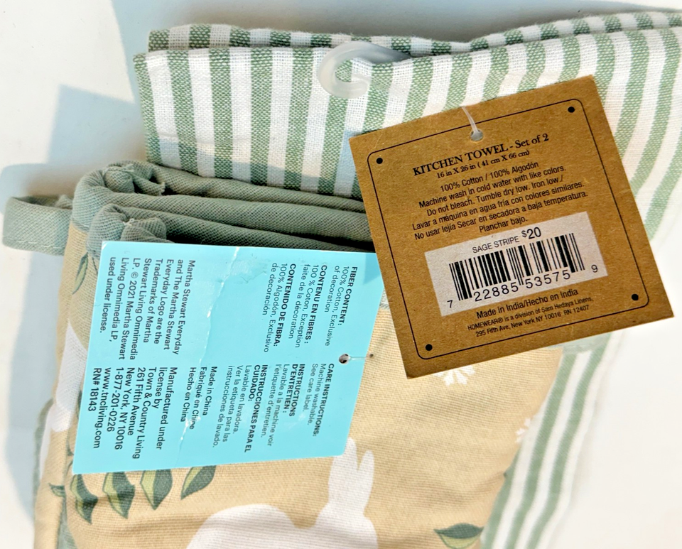 Martha Stewart Farmers Market Easter 4 PC Kitchen Set 2 Mini Mitts 2 Tea Towels