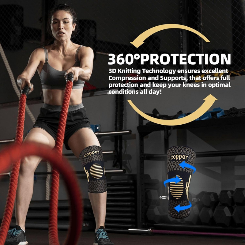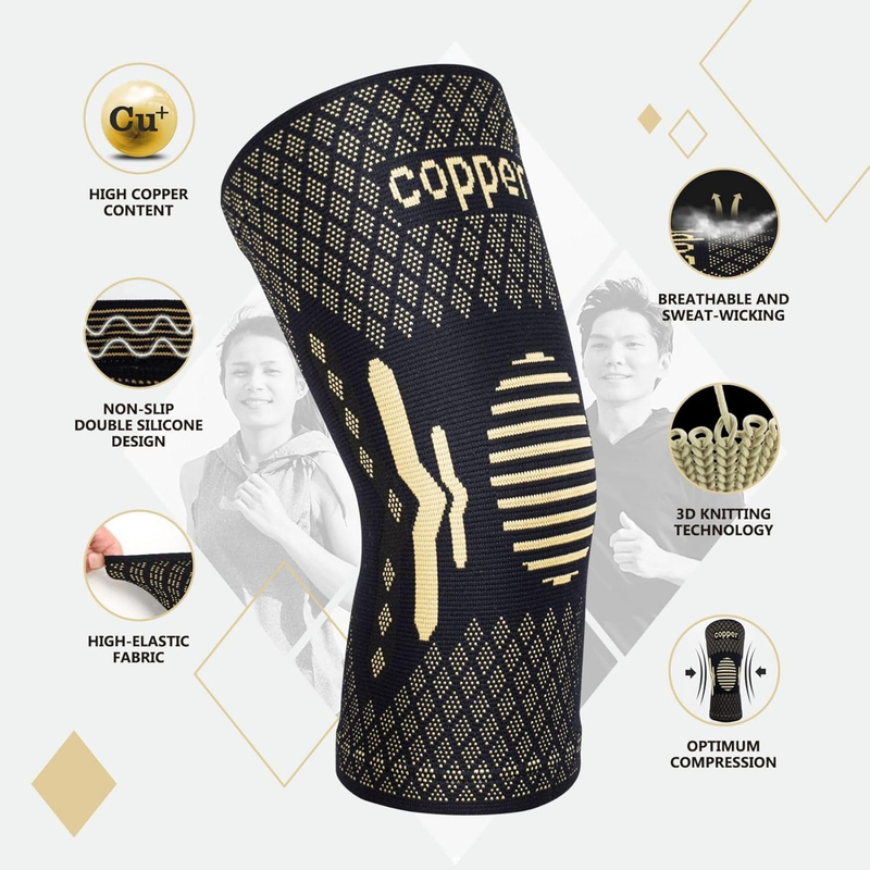 Specialist recommendation the use of copper compression knee sleeves for knee exercises which applies moderate pressures to strengthen knee support and maintains joint stability maintaining your peak performance and full range motion. The high quality fabric featured in Breathable Sweat-Absorbing gives you a smooth and soft feel so you can wear them all day long!