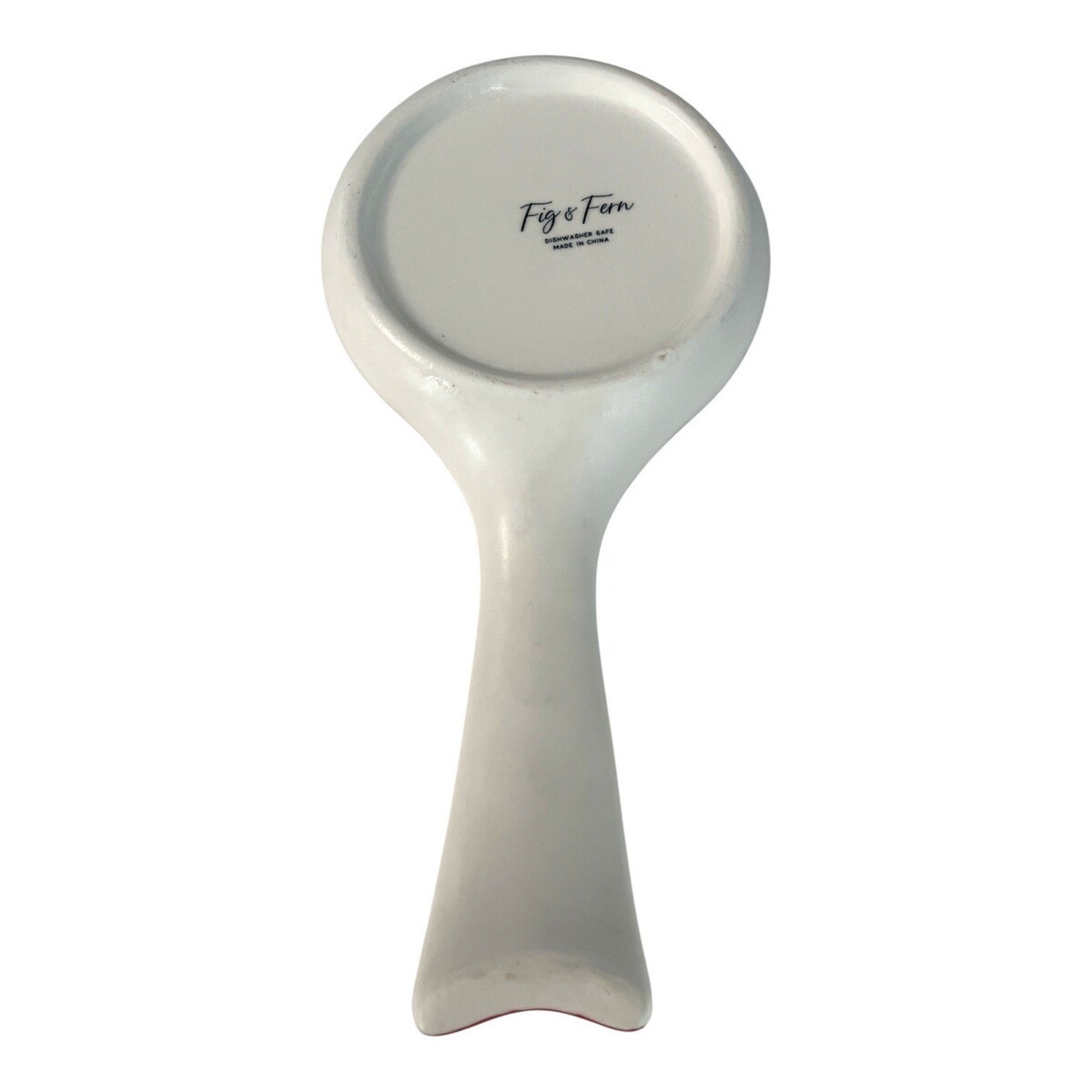 Fig Fern Bee Kind Ceramic Spoon Rest White Red Farmhouse Kitchen