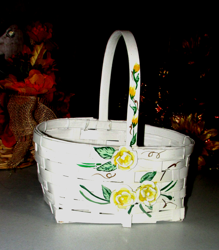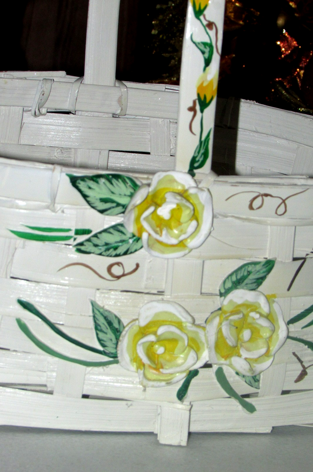 BASKET white w/3 yellow resin? roses 1 side and similar items