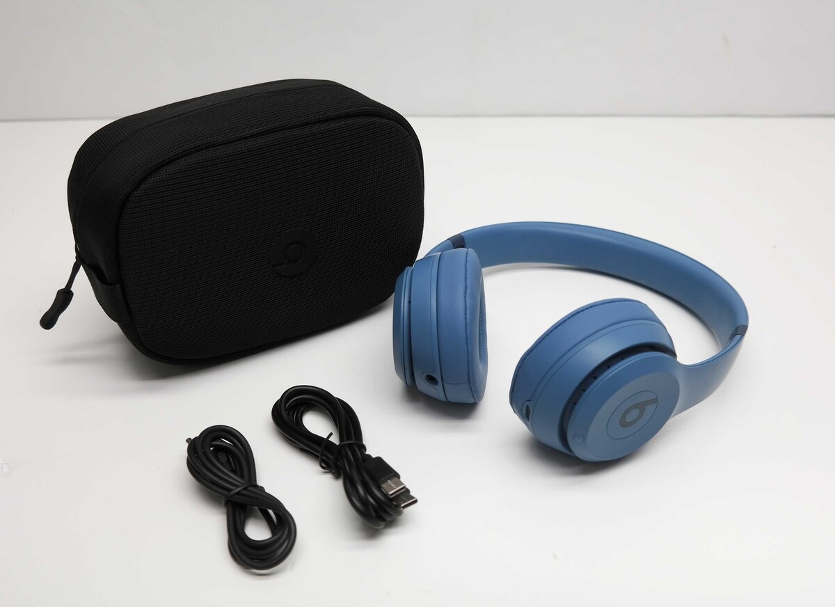 Description: Includes Headphones, Carrying case, USB-C to USB-C cable for charging and audio, 3.5 mm analog audio cable. Scratches on the earcups and headband. Some discoloration on ear cushions.