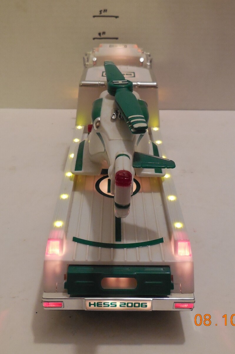 For Sale is a rare and hard to find 2006 Hess Gasoline Toy TRUCK and Helicopter Lights and Sounds NO BOX as pictured in Good used condition. What you see is what you will receive if its not pictured its not included. would make a wonderful addition to any Toy collection. Please ask Any and All Questions prior to purchasing. Fast Same or Next day shipping with Free Delivery Confirmation within the U.S. Payment Due within 7 days of purchase (if you need more time please let us know In advance) we love to combine shipping is always a Yes and Most of the time Additional Items Ship for free.