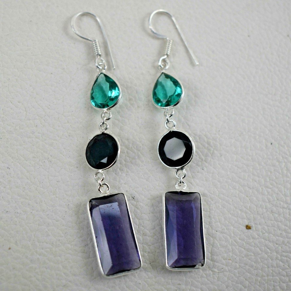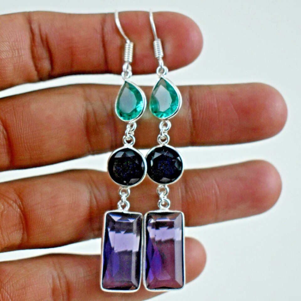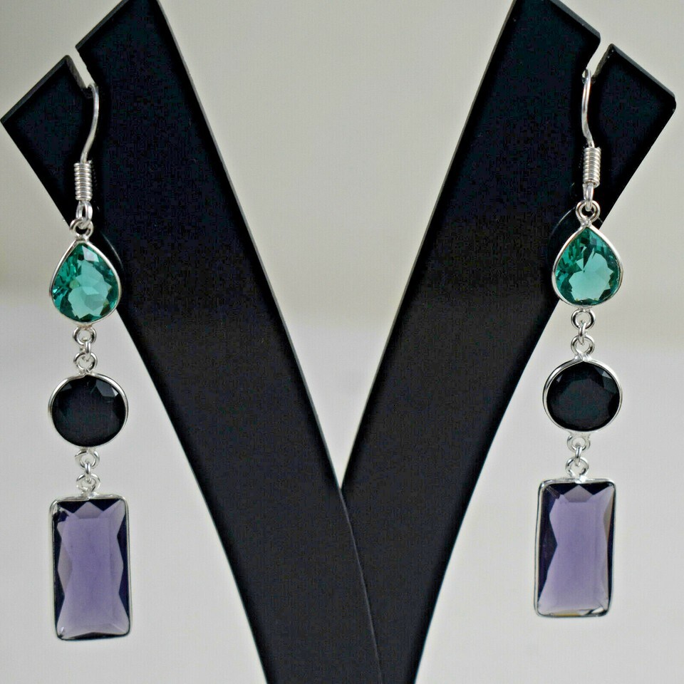 925 Sterling Silver Amethyst & Blue Topaz Earrings BES-1567