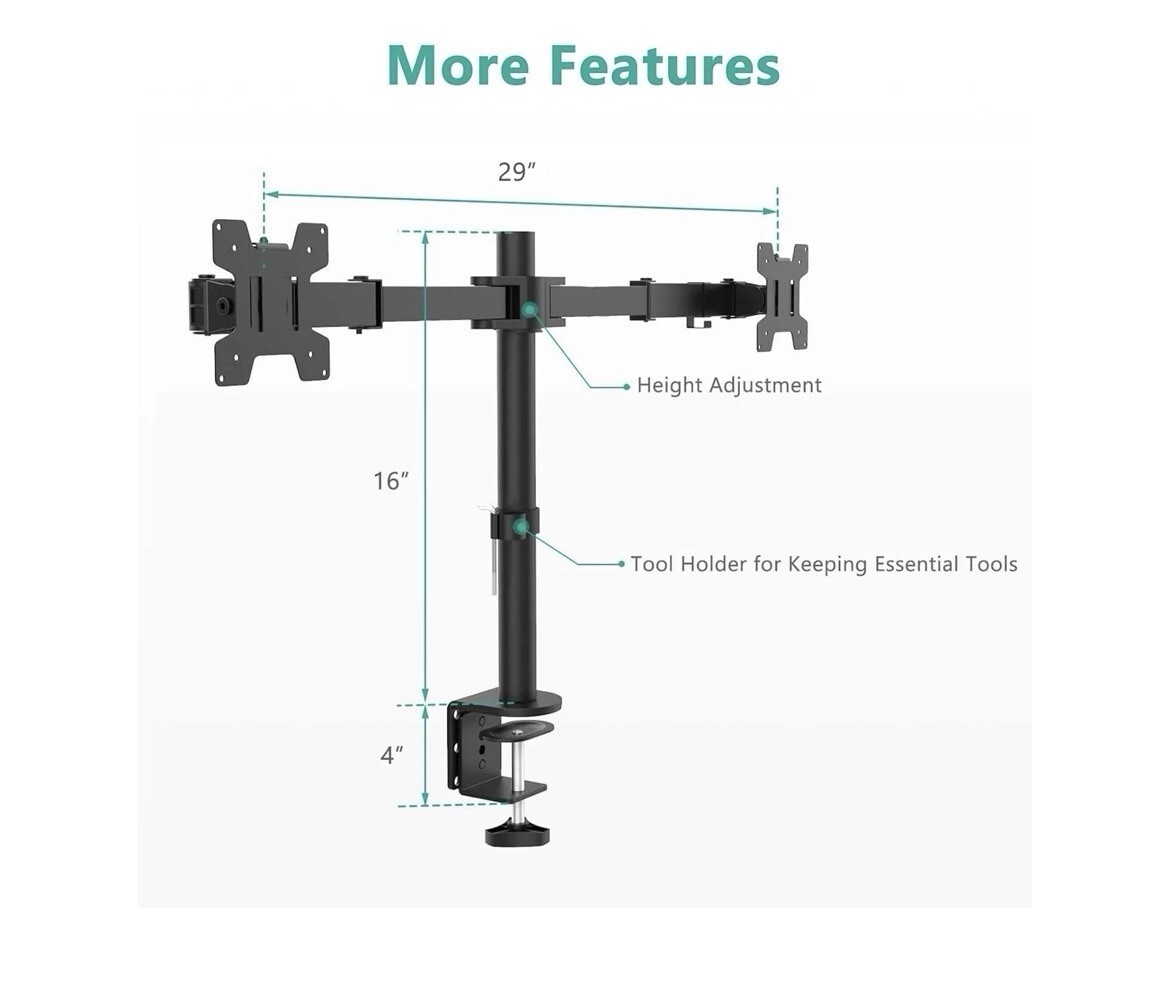WALI Dual Monitor Desk Mount Stand WL-M002 Adjustable Arm Fits 2 Screens Up To 27?