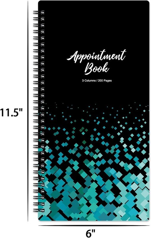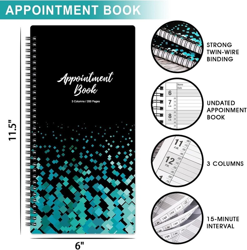 APPOINTMENT BOOK -This appointment book - salon appointment book is undated appointment book, it is a very efficient helper to schedule by hour and day, the size of this salon appointment book is 11.5" x 6", black background and green blocks pattern,premium thick paper and twin-Wire binding style makes this salon appointment book simple and elegant.