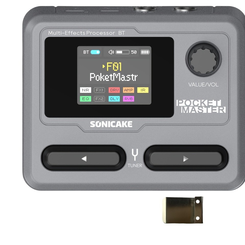 SONICAKE Pocket Master Guitar Modeling IR Cabinets Simulation Multi-Effects, English Version, with 1pc Belt Clip