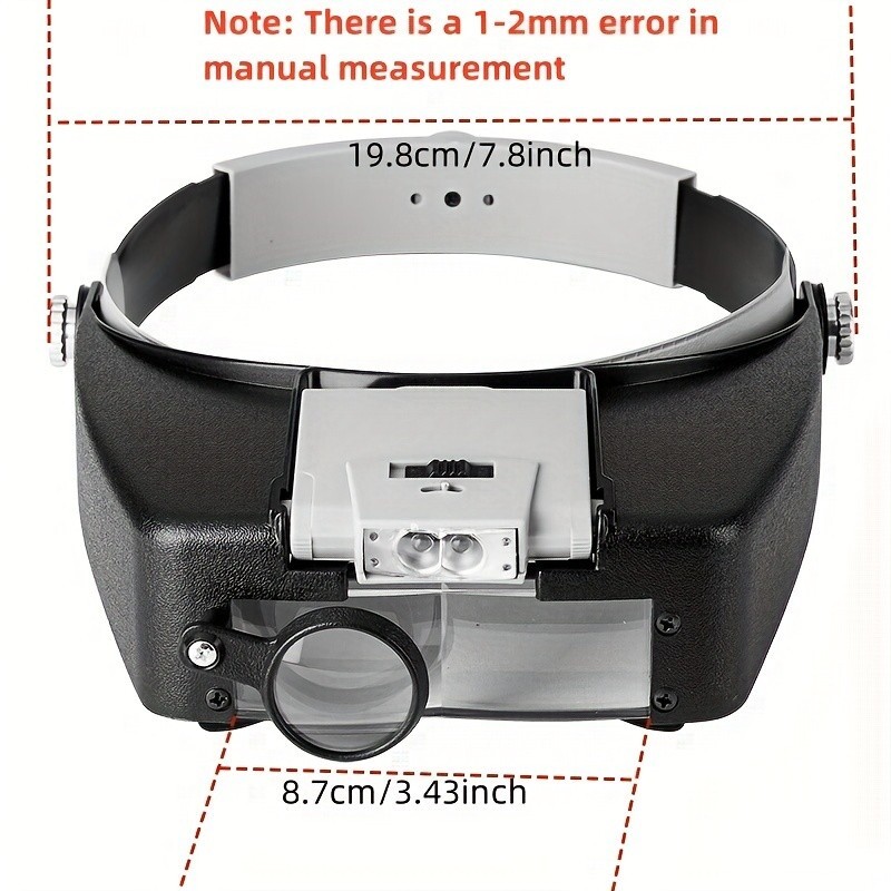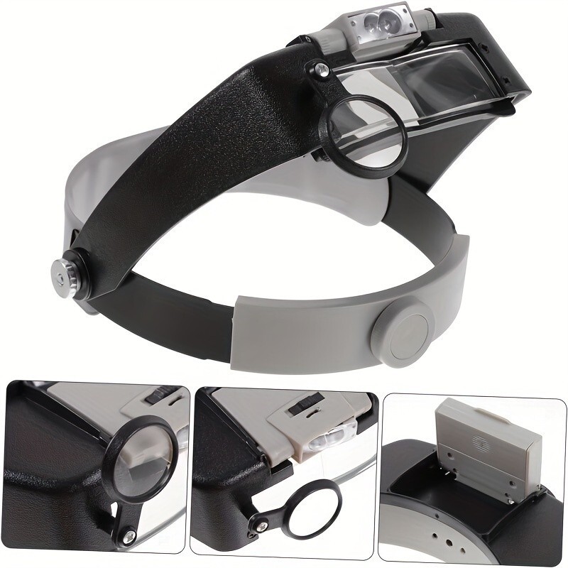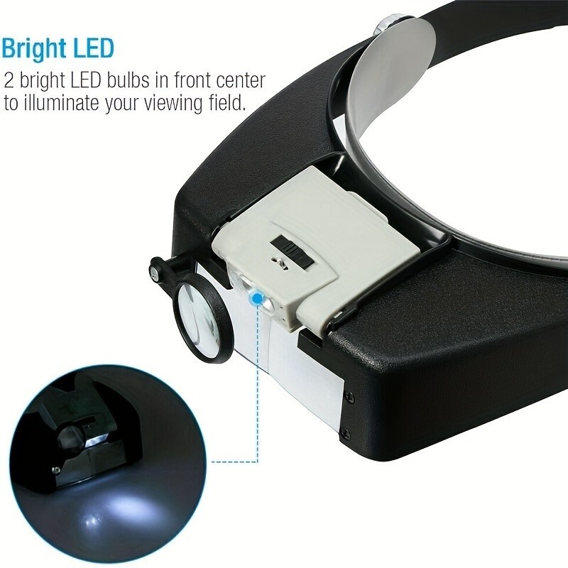 1pc Head Magnifier with Helmet - Adjustable Magnification (1.5X/3X/8.5X/10X) 2-LED Lights, Low-Voltage Suitable for Watch Repair, Arts Crafts, Reading Aid, Portable Magnifying with Helmet Attachment