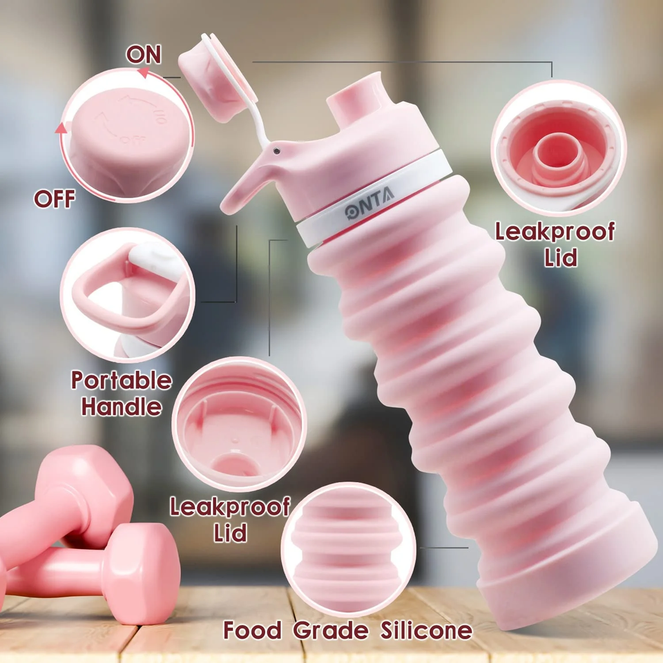 BPA-Free Collapsible Silicone Water Bottle 20oz - Travel-Friendly Pink Design
