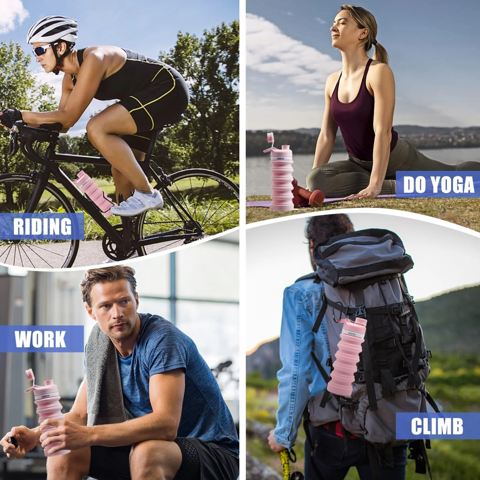 ??SAFE AND HEALTHY?: BPA free and made from 100% food grade silicone, this incredible water bottle does not pose any health risk, and can be used to store hot liquids up to 248F (120C) or cold to -58F (-50C) drinks. ??COLLAPSIBLE AND PORTABLE DESIGN?: One of the most intriguing things about this water bottle is its lightweight and collapsible design that makes it super easy to carry around. ??LEAKPROOF AND EASY CLEAN?: You have nothing to worry about spilling your drink inside your bag, and this is all thanks to its secure seal. ??UNIQUE DESIGN?: Thanks to its sturdy design, our water bottle is shatter resistant, making it perfect for traveling, yoga, gym and even ??100% SATISFACTION GUARANTEE?: Its either you?re satisfied or you get a full refund with no questions asked. This is because we place a huge premium on customer satisfaction.