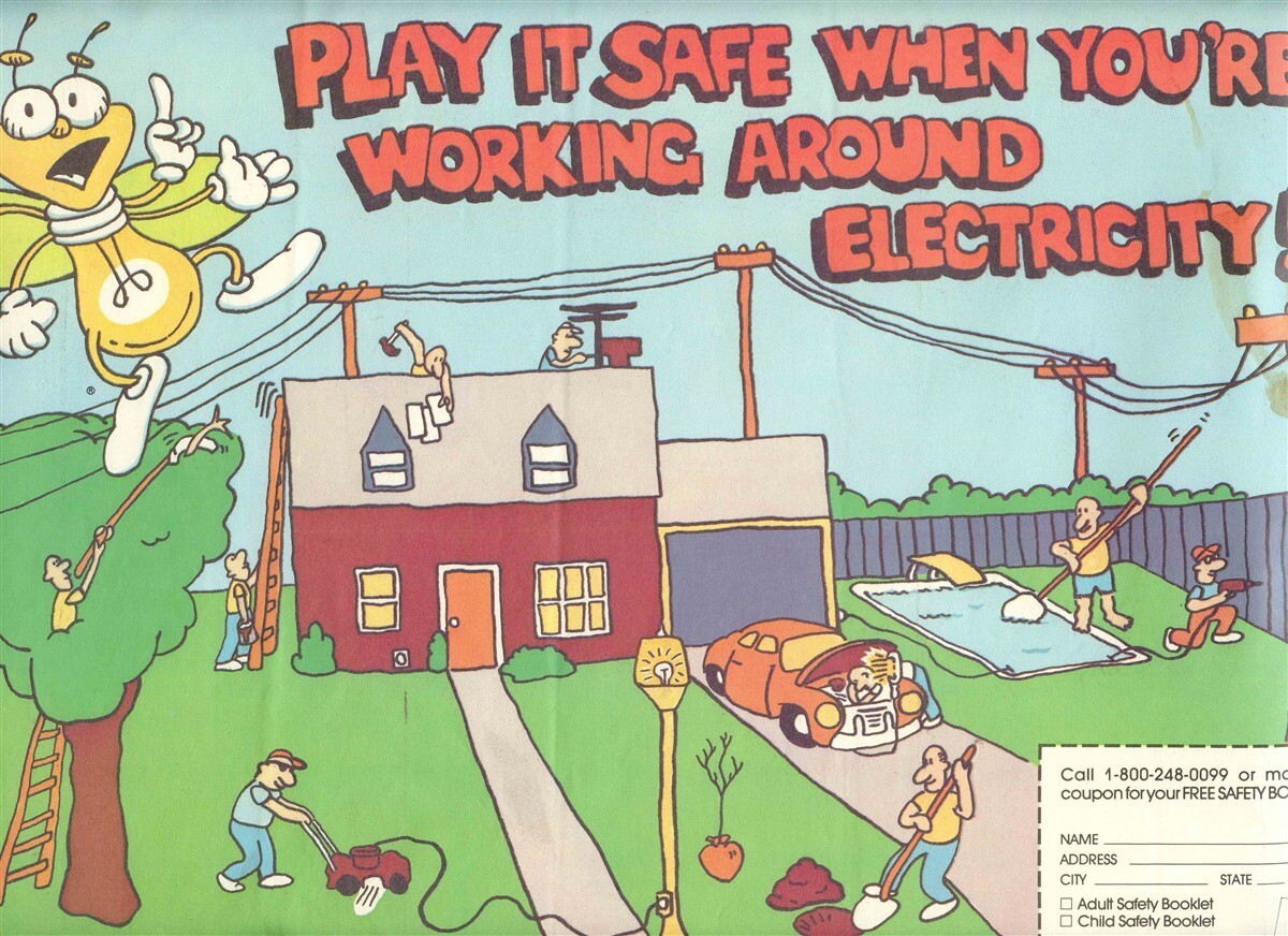 Due to the size limits of my scanner, not all of the placemat will show in the listing. Play it Safe When You're Working Around Electricity Puzzle Placemat Metropolitan Edison Reading 1980's