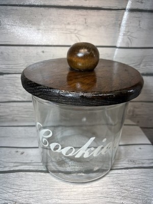 VTG GLASS Chunky WOOD LID Counter Display COOKIE JAR