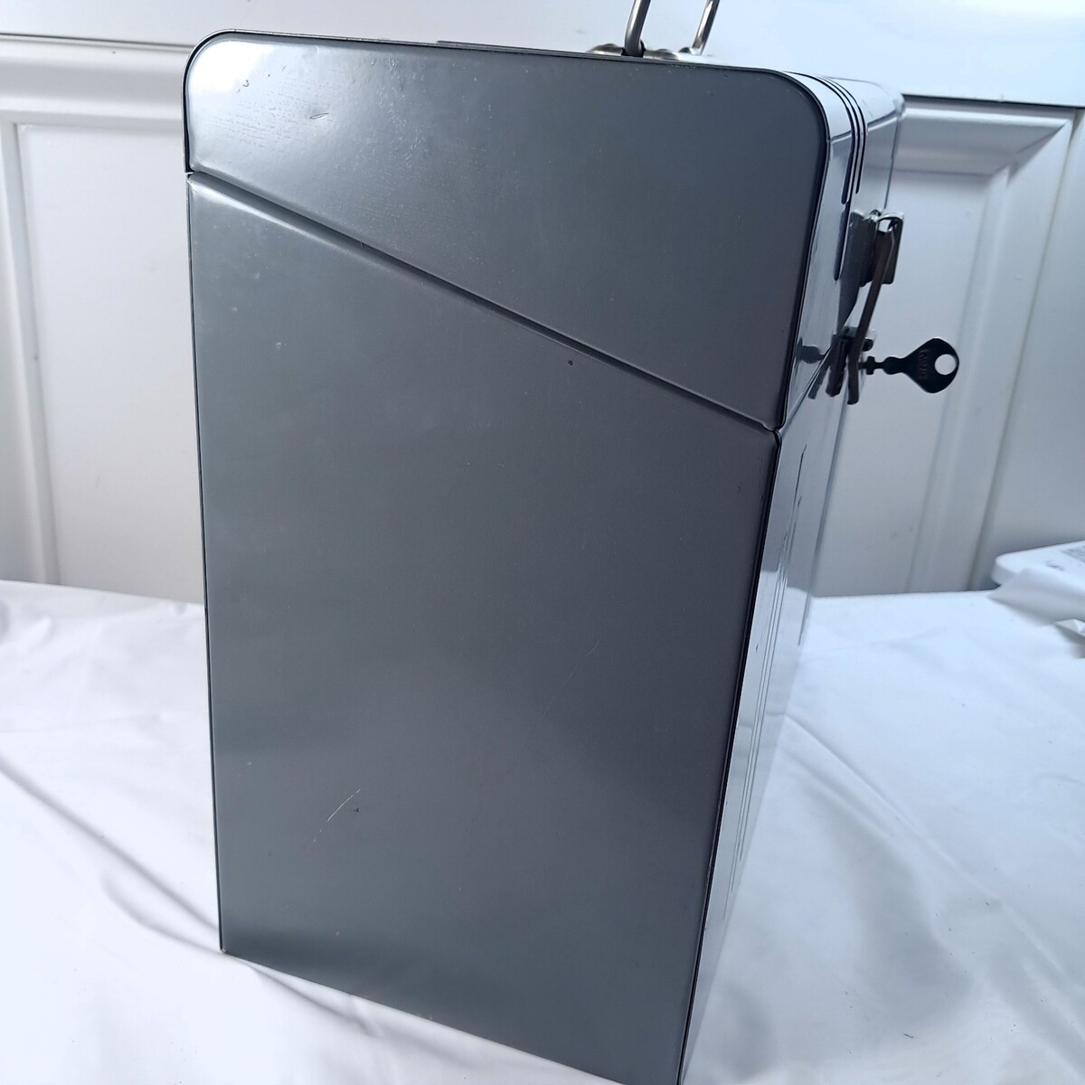 Vintage ACORN Metal File Storage Box Lock Key Art Deco silver grey filebox case