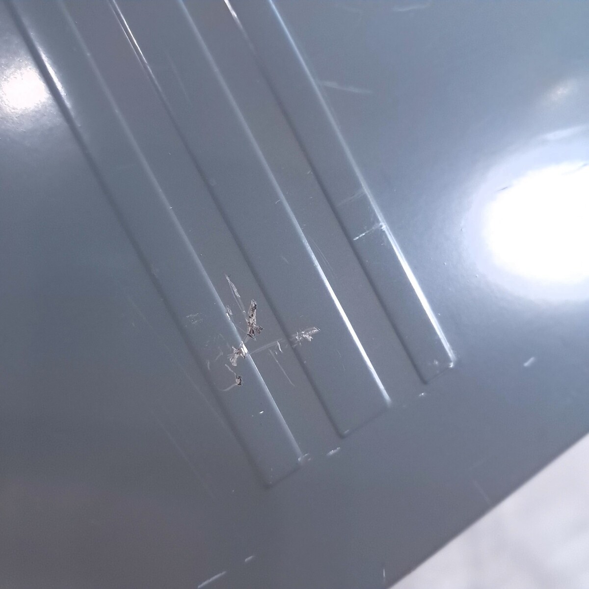 Silver/grey color. Includes Key! Scratches/wear/small dents/marks as shown. See all pics.