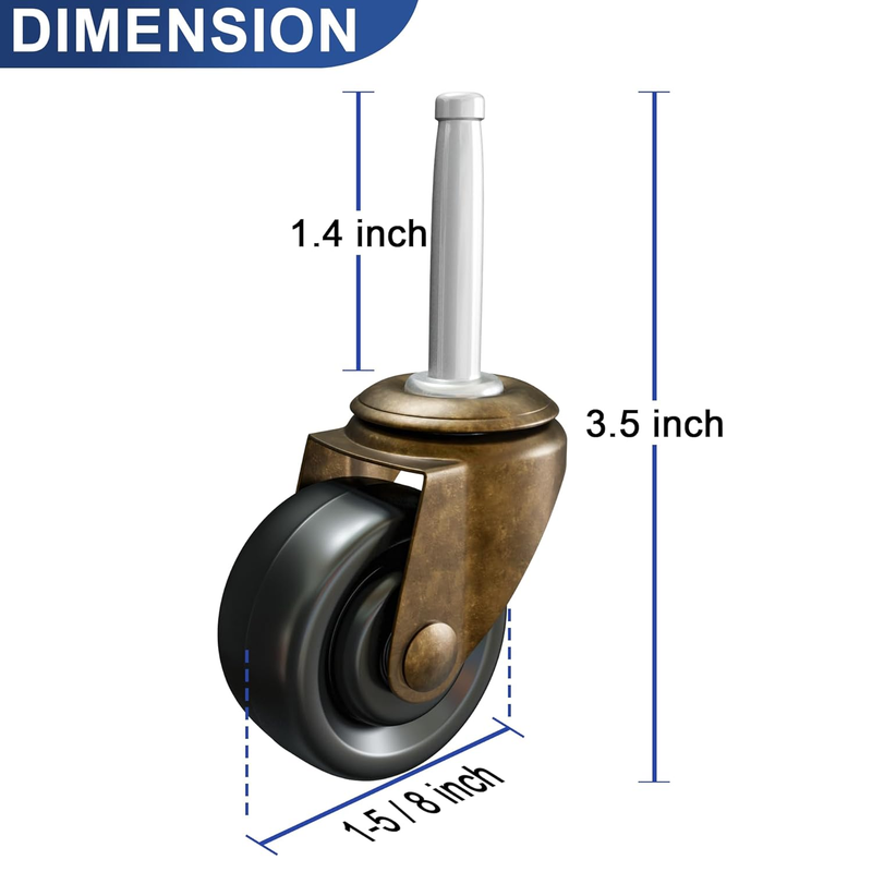Antique Brass Casters with Rubber Wheels 1-5/8" Stem Caster Replacement Set of 4