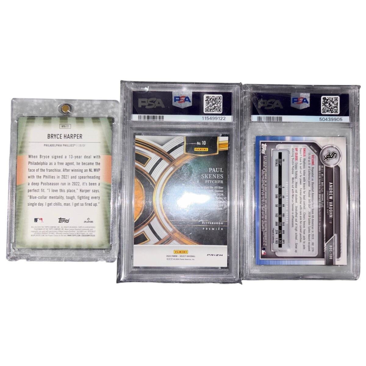 Panini Skenes PSA 9, Home Field Advantage Harper, PSA 10 Vaughn