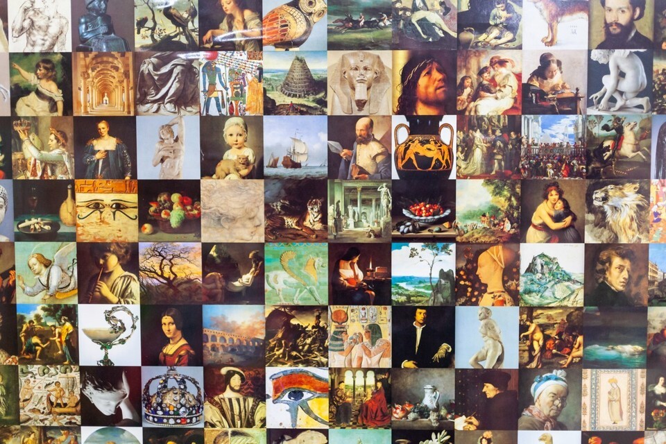 Gorgeous Poster Featuring a number of works at the musee du Louvre in Paris