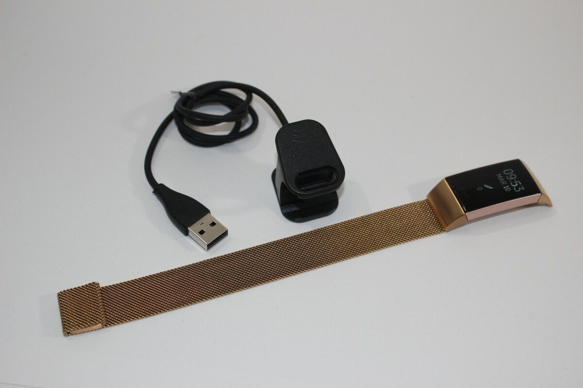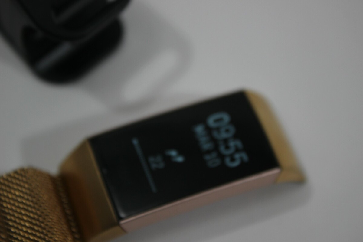 Fitbit Charge 3 Special Edition Rose Gold w/ Metallic Strap Bands S/L Small Larg