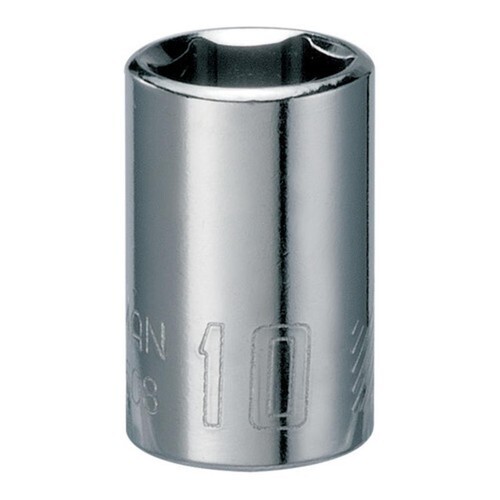 Your toolbox isn't complete without the 1/4-in. Drive 10mm 6 Point shallow Socket. This socket comes with large size markings and a rust resistant coating.