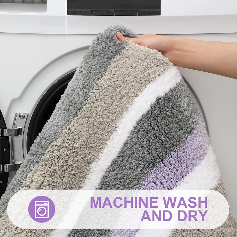 Beautiful Design and Multi-Purpose Use: Buganda bathroom floor mats are designed with classic striped shapes. The harmonious combination of gray and purple, and green makes the product look more vivid. It?s more than decor, it?s a lifestyle. It can be widely used in the bathroom, bedroom, living room, laundry room, and around the bathtub and sink.