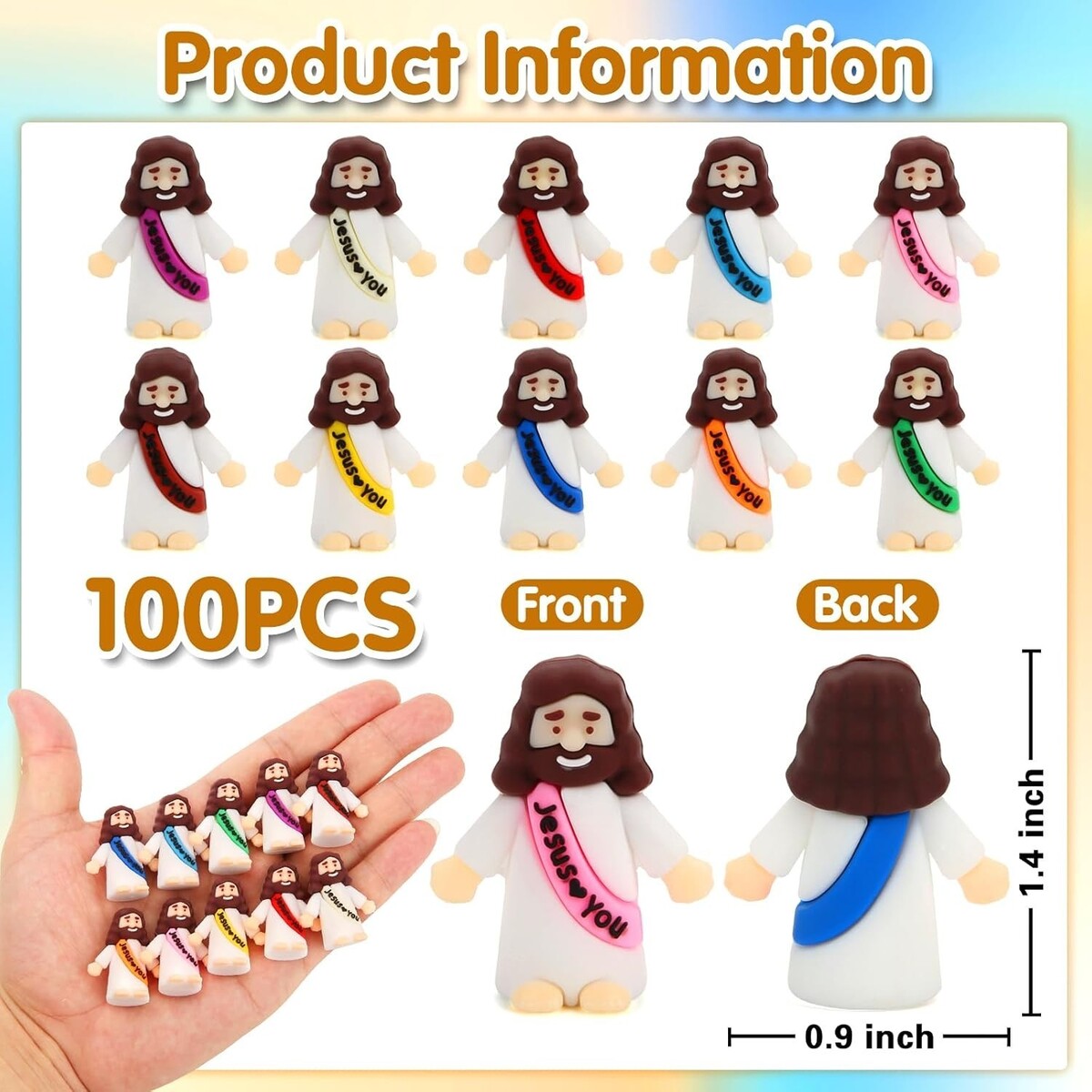 Durable 100 Mini Jesus Figures - Perfect for Easter Décor & Classroom Prizes