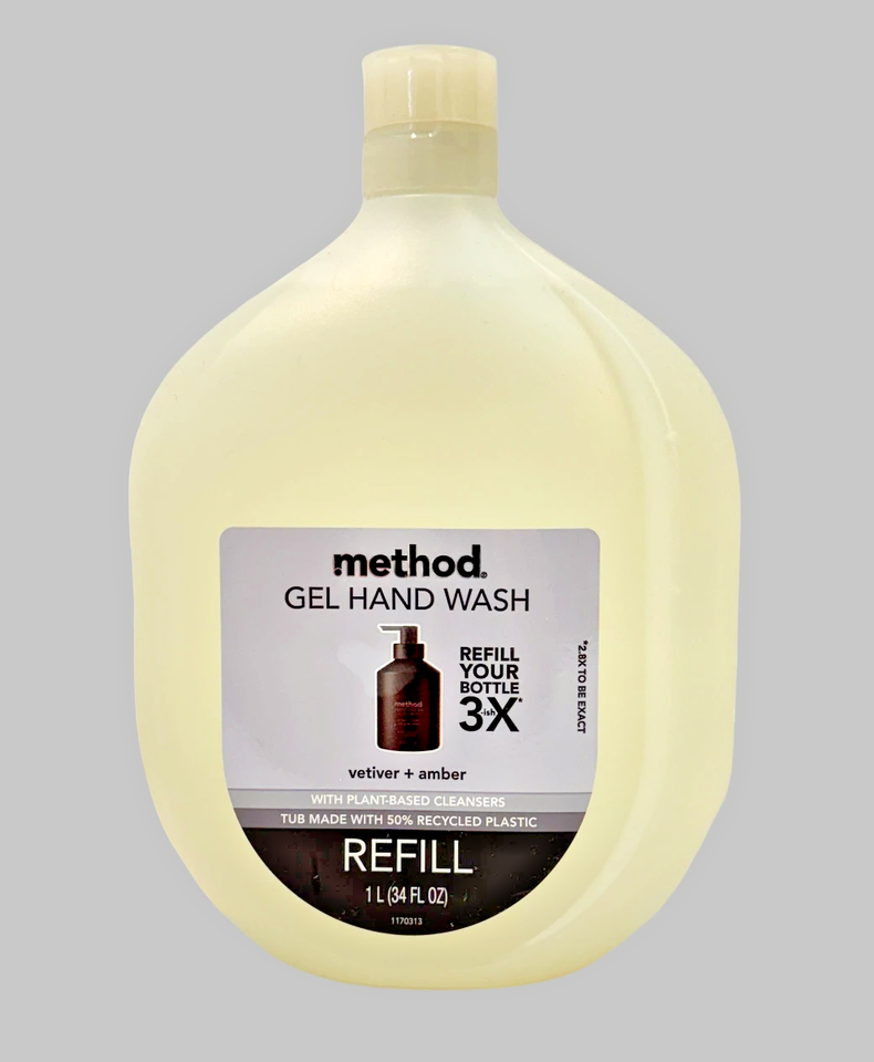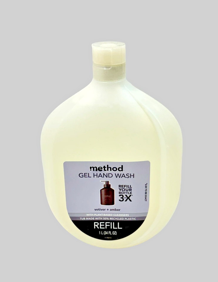 Method Hand Wash 34 Oz Refill Size Clear Vetiver + Amber Plant Based