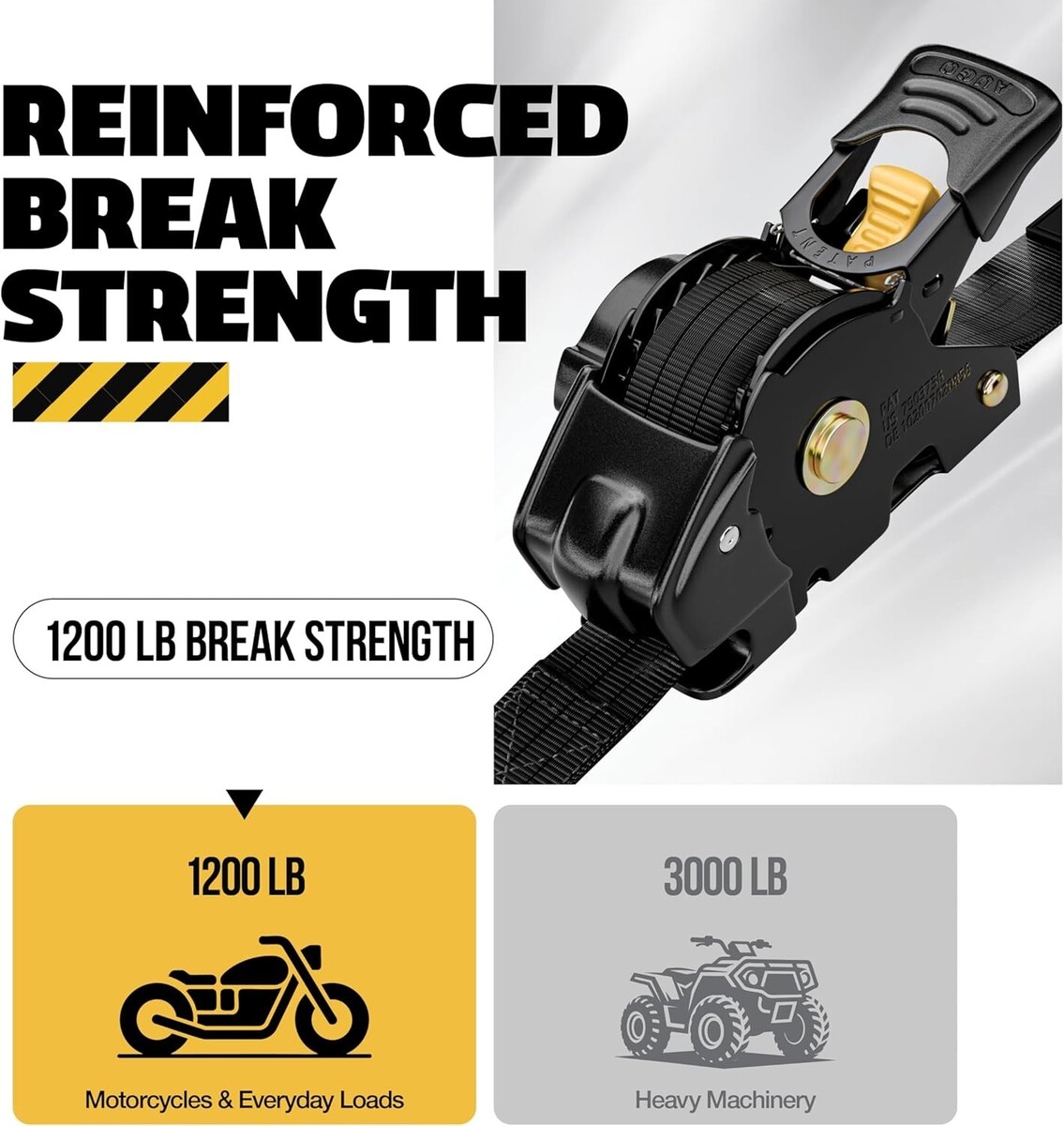 Imagine the peace of mind that comes from knowing your cargo is safely secured during transport. Our 1200 Lb Break Strength Ratchet Straps are designed with both durability and safety in mind. With a remarkable 1200-pound break strength, these straps ensure your valuable items are held firmly in place, no matter the journey.