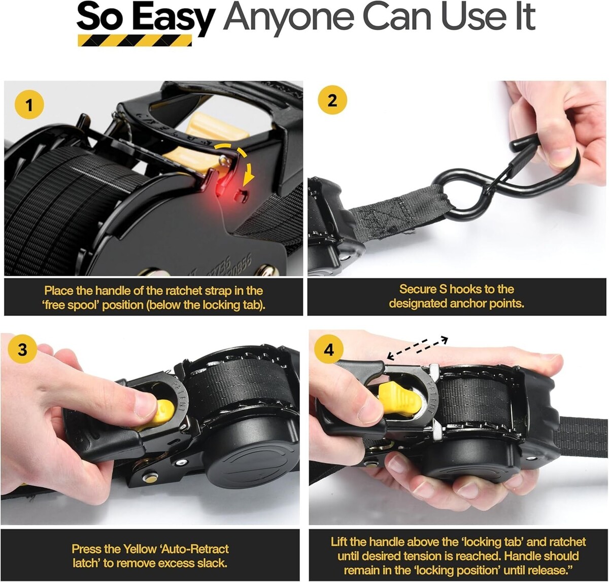 - Pack of 4 Heavy-Duty Ratchet Straps