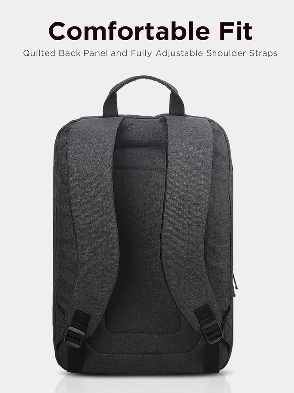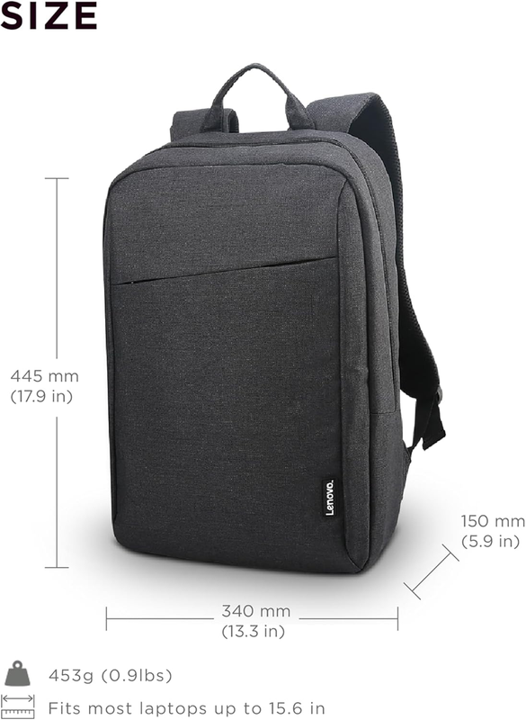 The Lenovo 15.6" Laptop casual backpack B210 is the sleek and lightweight solution to all of your notebook computer carrying needs. With its casual, modern design and water-repellent fabric, this is a laptop case that's perfectly suited to your daily life. Adjustable, padded shoulder straps and a quilted back panel make it easy and comfortable to carry, while the padded laptop compartment keeps your computer or tablet safe inside. Plus, the quick-access front pocket gives you convenient access to your accessories. This appealing Lenovo Laptop backpack offers an integrated laptop compartment that comfortably fits most laptops up to 15.6", a range of internal pockets for those must-have accessories, and a spacious main compartment for books and other items. Its clean, sleek look is great for both men and women, business professionals and college students alike. There's plenty of room inside, so just grab and go! Dimensions: 17.93 x 13.4 x 5.91 inches. Fits up to (L x D x H) 10.0 x 0.8 x 14.2 inches.