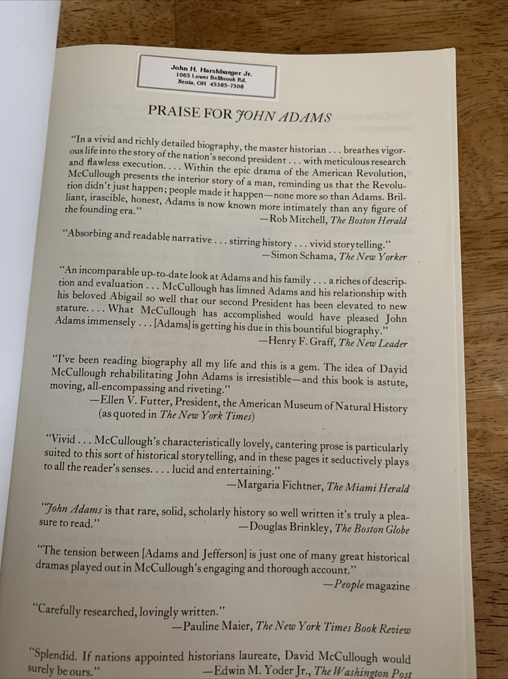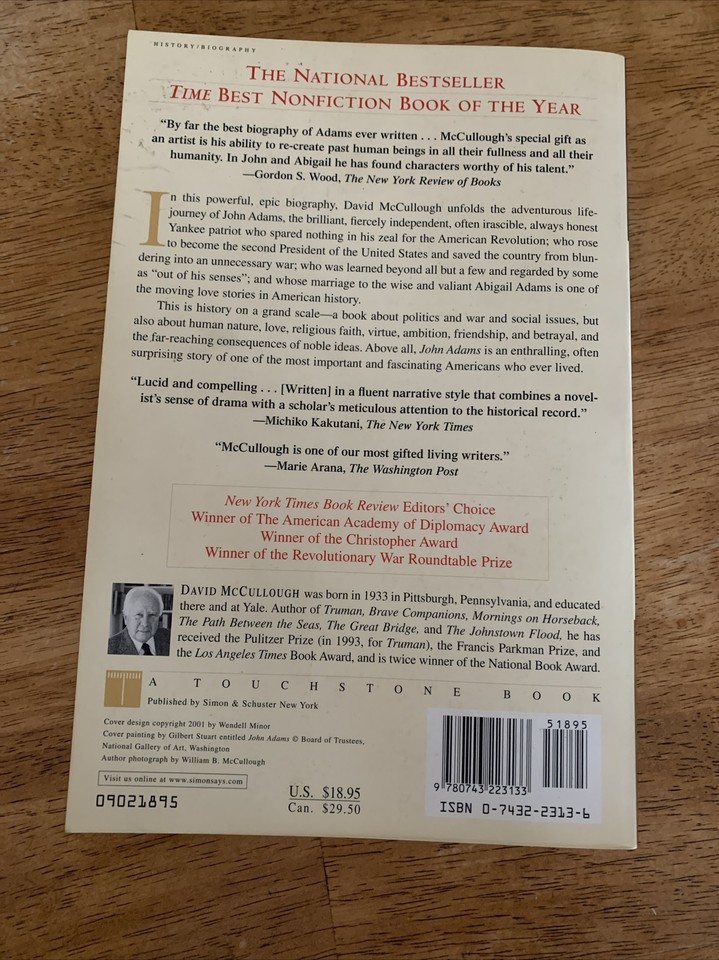 John Adams by David McCullough 2002 Touchstone Paperback 1st Ed. Never read